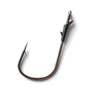 Forged from high carbon steel this hook features a surgically sharpened needle point. Pair that with our slightly oversized barb, this hook is designed to not just hook fish, but keep them hooked. Our double-barbed bait keeper is made from a durable ABS plastic material that stays in place, keeps your plastics secure, and won't break off after just a couple of fish. And finally to top it off, our flipping hook sports a welded line tie. Critical for keeping your knot secure, no matter if you're tying a snell knot or traditional palomar.