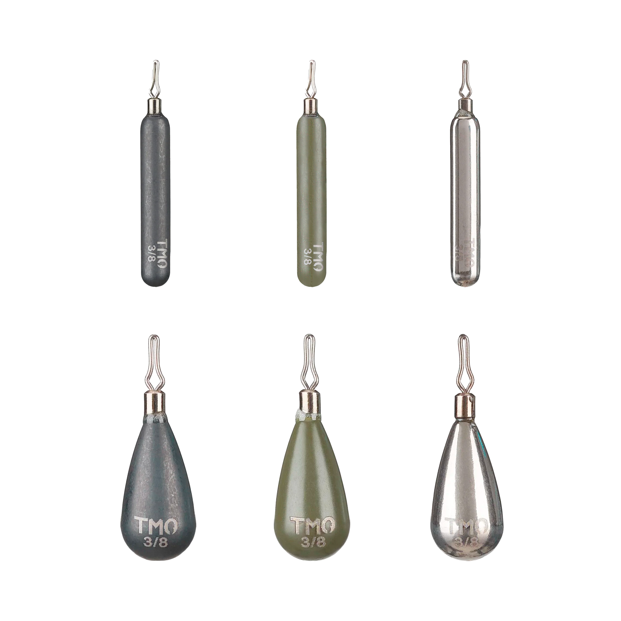 All of our black tungsten weights feature a 100% non-chip finish, while our green pumpkin tungsten weights are still extremely durable. Each weights bore is diamond honed and insert free for no sharp edges or line fraying, and each weight is size engraved for easy differentiation.